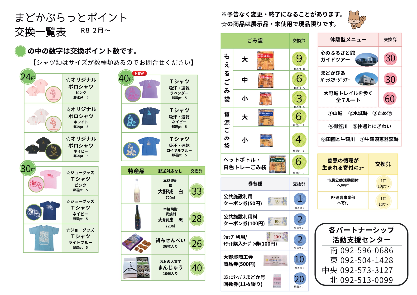 新しく追加したメニューが多数ありますので、公益活動に参加して付与されたポイントを、ぜひ活用してください。