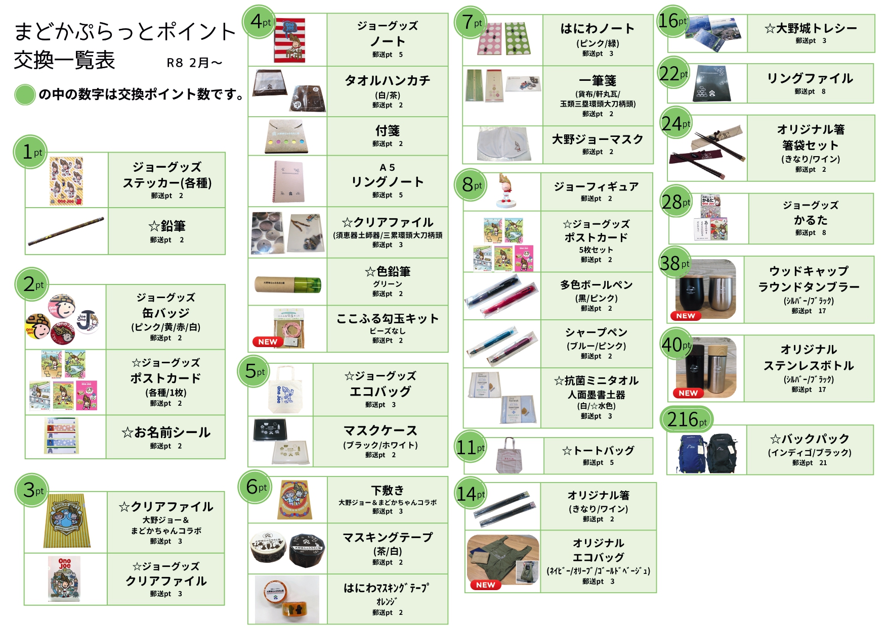 心のふるさと館オリジナル商品が新しく追加されたことに伴い、まどかぷらっとポイント交換メニューを更新しました。